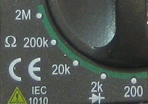 This meter has the Ω symbol and then 7 submodes, ranging from 200Ω to 2000MΩ (wow!)