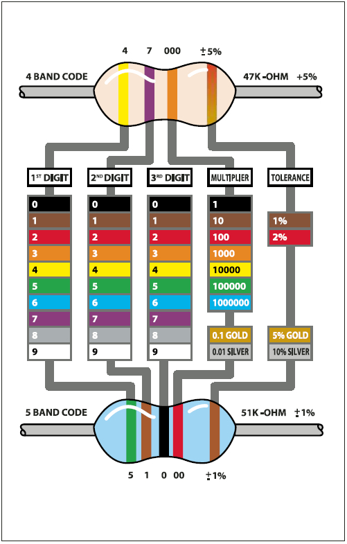 Resistors are color coded, at first it seems like a bad way to print the values but with a little time it becomes faster because you dont have to read any numbers and the stripes are visible no matter how it is rotated. You can use this calculator to play around with resistor color codes