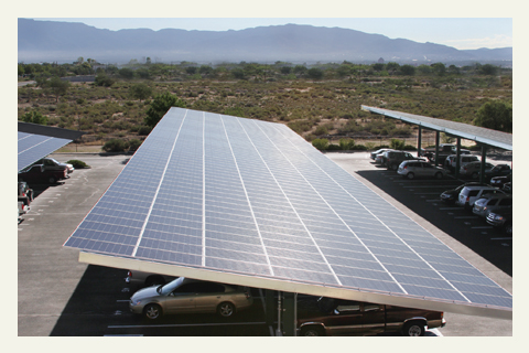 The neatest thing is that because they are in in New Mexico, the sunniest state in the US, they set up a solar grid that doubles as a car park shade (I can't imagine the pain of trying to get into your car after 8 hours in the NM summer sun. They get 1 MWatt and it helps to run their facility!