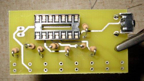 here) is facing up. Bend all the resistors into U-shapes and insert