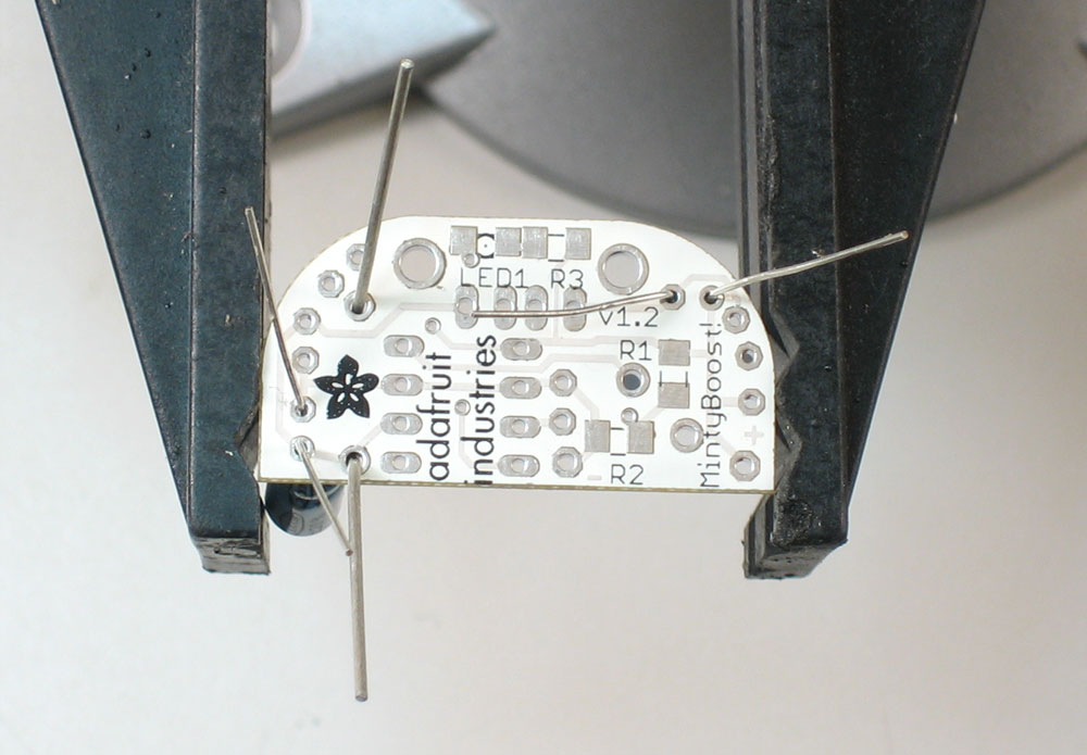When you put the parts in, bend the wire leads out a little so the parts stay up against the board when you turn it upside down to solder.