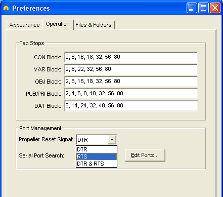 Start up the Propeller tool and go to Preferences... Then under the Operation tab, select RTS as the Reset Signal.