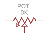 The schematic symbol for a potentiometer looks like this, its kinda like there is a resistor, and then the arrow pointing in the middle is the wiper. The little arrow on the left indicates which way the wiper moves when potentiometer turns clockwise (its not terribly important, if you get it wrong on a breadboard just turn the pot around.