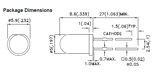 The first useful thing you'll find is the dimensional 'package' information. The 'package' here is the LED itself