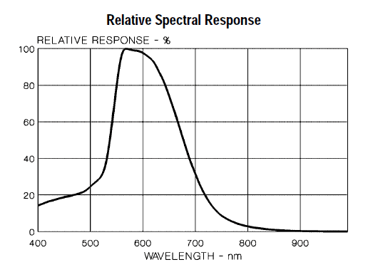 Basically, blue light wont be nearly as effective at triggering the sensor as green/yellow light!