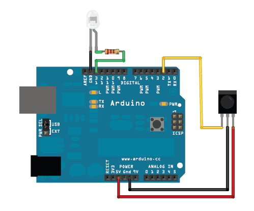 Next up we'll need to connect an IR 940nm LED to the output of the Arduino