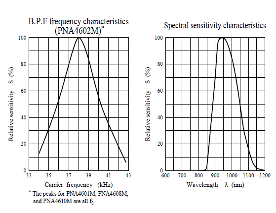 As you can see from these datasheet graphs, the peak frequency detection is at 38 KHz and the peak LED color is 940 nm. You can use from about 35 KHz to 41 KHz but the sensitivity will drop off so that it wont detect as well from afar. Likewise, you can use 850 to 1100 nm LEDs but they wont work as well as 900 to 1000nm so make sure to get matching LEDs! Check the datasheet for your IR LED to verify the wavelength.
