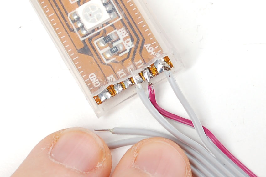 The most important part is that you'll be soldering to one end of the LED strip, and to make sure you are soldering to tbe INPUT end. To determine which is the input, check the writing on the flexible PCB. If it says LI/CI/SI/DI then thats the (correct) input end. If it says LO CO SO DO then thats the (wrong) output. You can only connect to the input end so double check