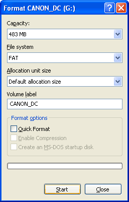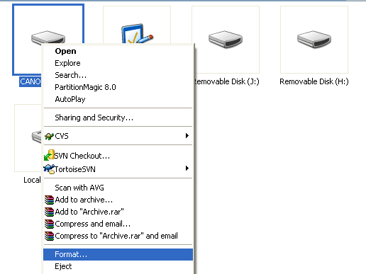 If your card is not formatted properly, its pretty easy to do and you only need to do it once. To format the card, place it into your card reader, then right click on the disk and select Format…