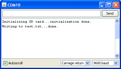 OK, now insert the SD card into the breakout board and upload the sketch.