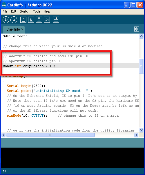 The only problem is that we've made a few nice updates to the SD library which are not in Arduino v22. So if you're using v22 please install our revision as follows!