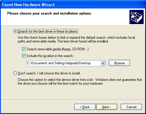 Browse to the deskop (or where-ever you saved the inf)